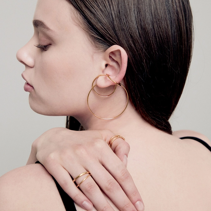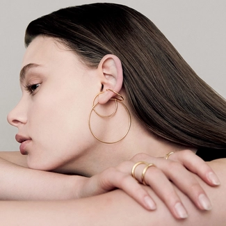 It is a unique ear cuff designed with harmonious three rings. The sophisticated and stylish mood goes well with any looks and adds accents to your stylings.