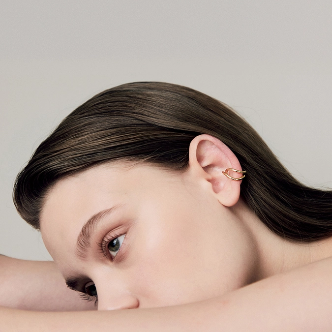 Ear cuff with an elegant mood coming from its two-way curves. It is perfect as a simple daily fashion accessory.