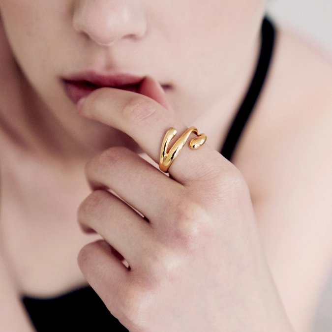 - MATERIAL: 24K GOLD ION PLATED BRASS - MEASUREMENT : FREE SIZE FINGER SIZE 52 - 57MM MADE IN KOREA