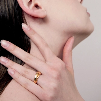 This model's one deflected line is crossed to give this ring a more elegant sense of dimension.
