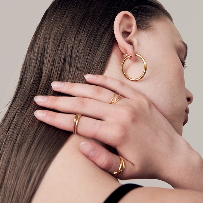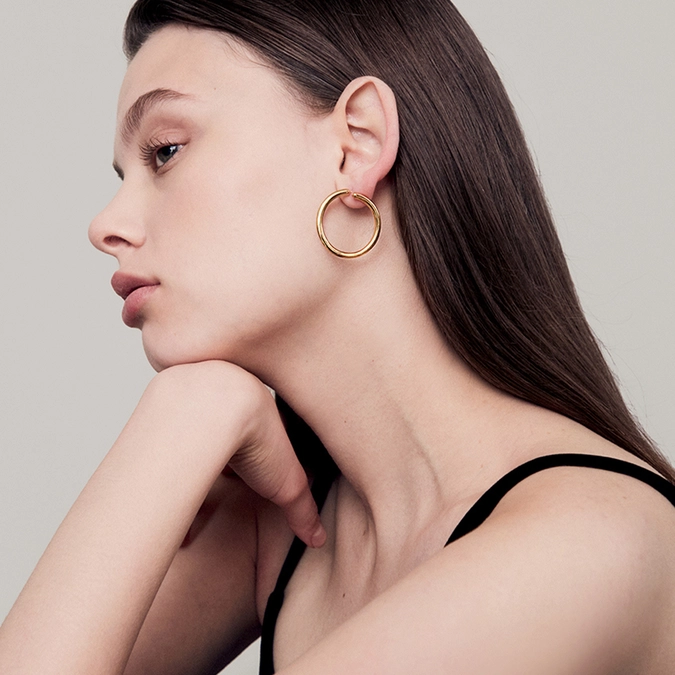 This solid and plain curvy ring earring gives an elegant mood to your look. Customers love this design for its simple design that can easily match with other accessories.